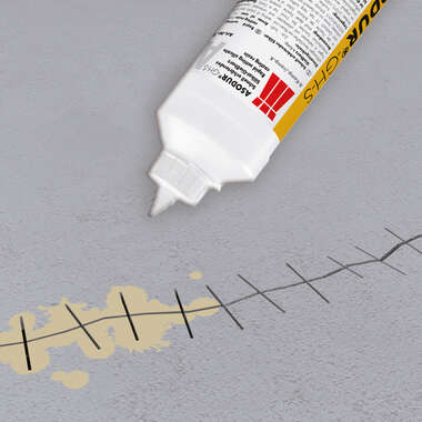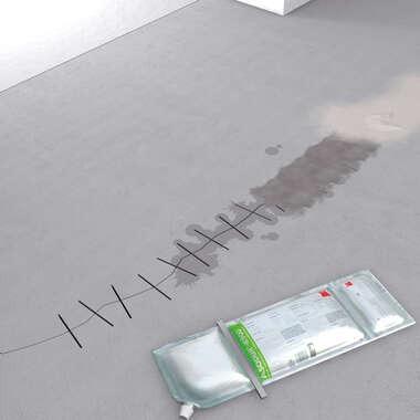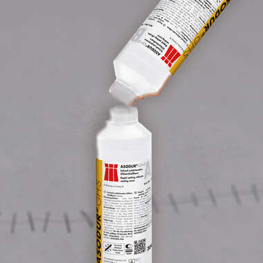 Cracks in concrete floors or screeds are as a rule subjected to changing mechanical loads. To adhesively seal the crack, epoxy resins are particularly suitable. ASODUR-K900 is probably the most practical way to simply, quickly and cleanly close cracks in screeds and concrete. We supply the low viscosity epoxy resin based product in a practical squeezy bag – including gloves, screed clips and PE pipe. You have the possibility to mix a heavy duty pourable resin as a closed system by simply squeezing.