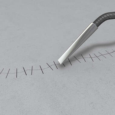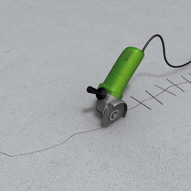 Saw cut the crack or joint lengthways (to approx. half to two thirds to screed depth). At right angles to the crack and at 30 cm intervals cut in10 cm long transverse slots.