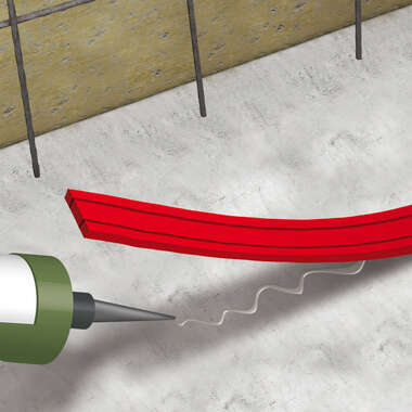 Alternatively where there is at least 8 cm concrete cover from the water bearing side, AQUAFIN-CJ6 can be fixed at 4 – 6 points by screw or nail. The swellable water bar must lie flush with the concrete substrate.